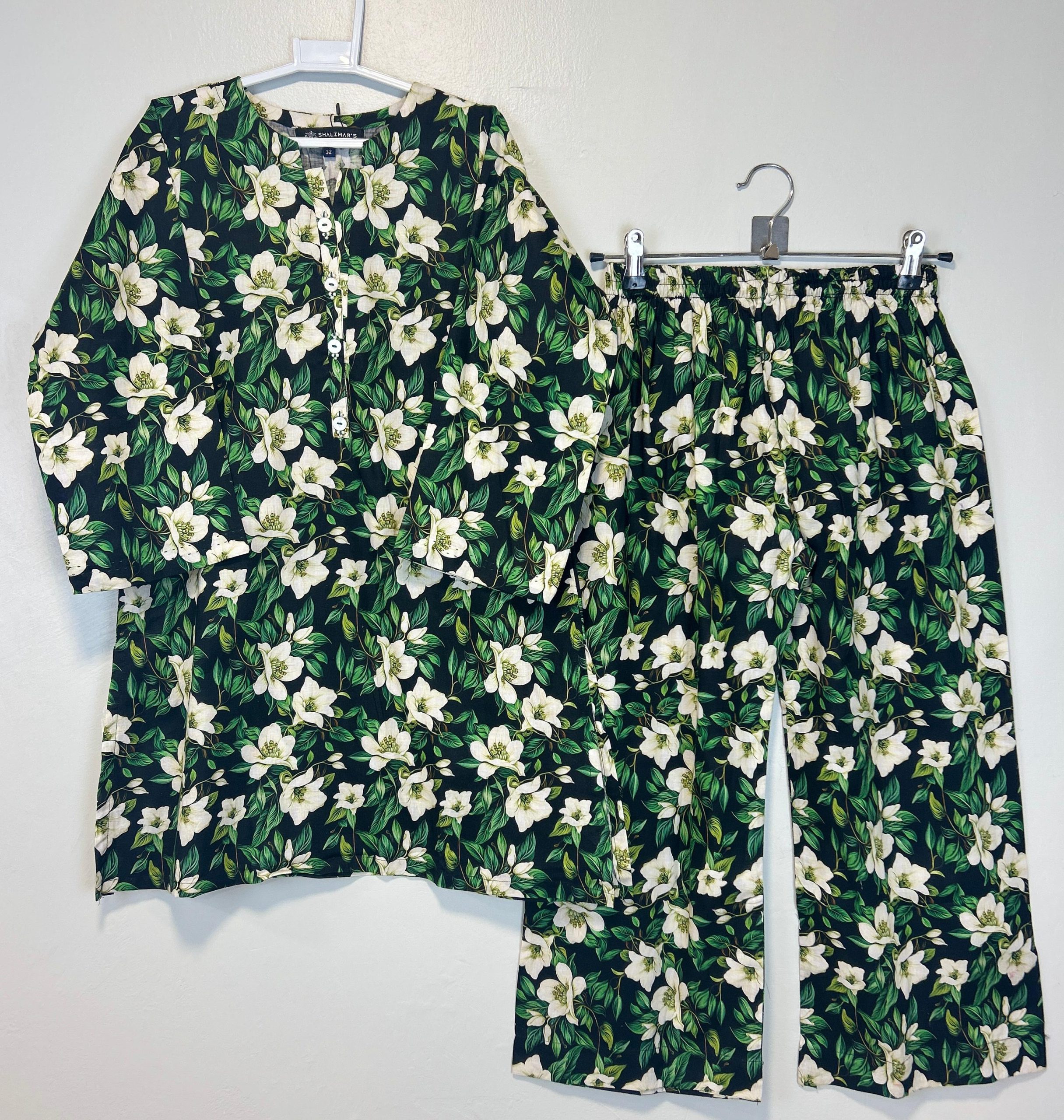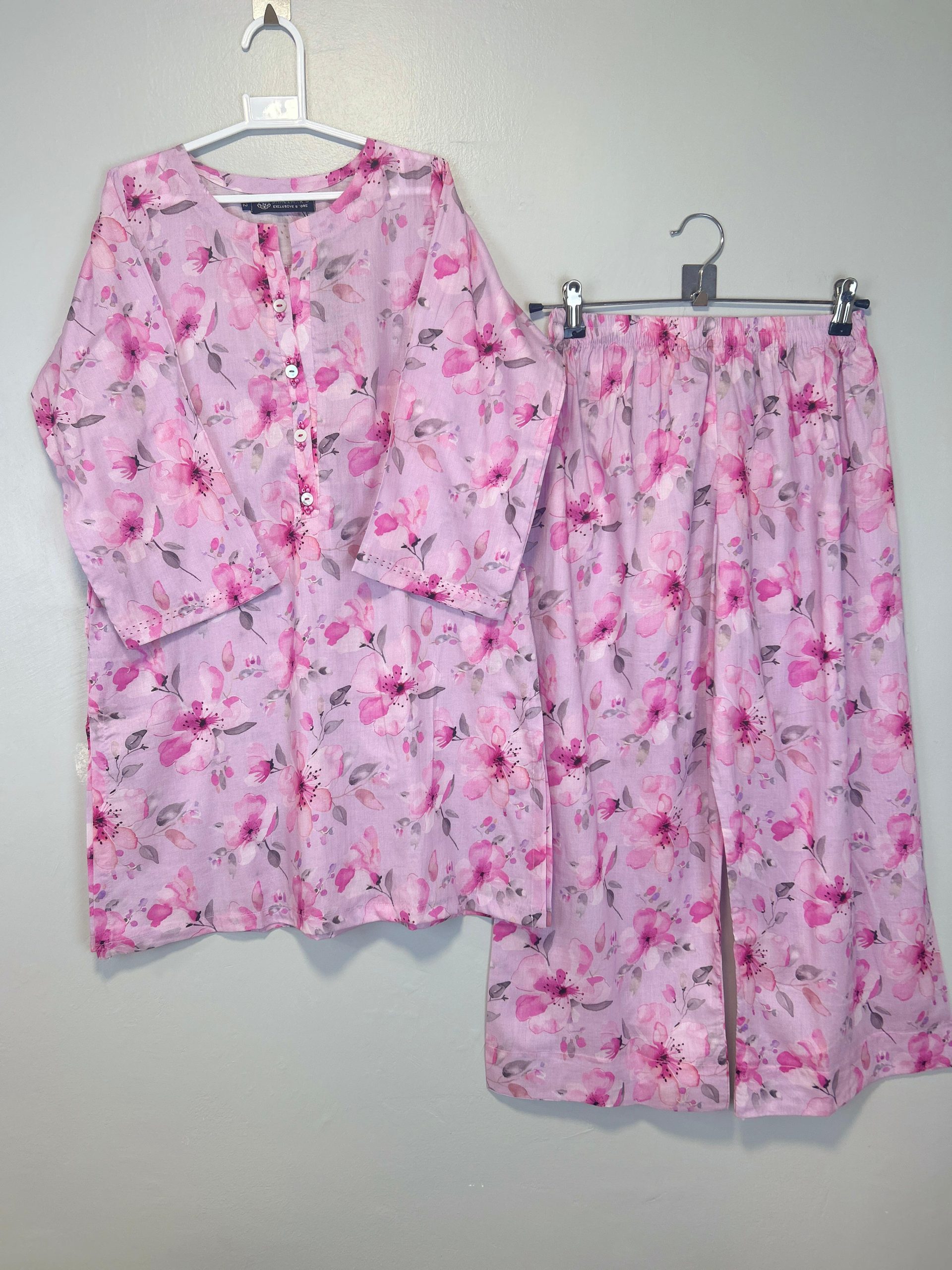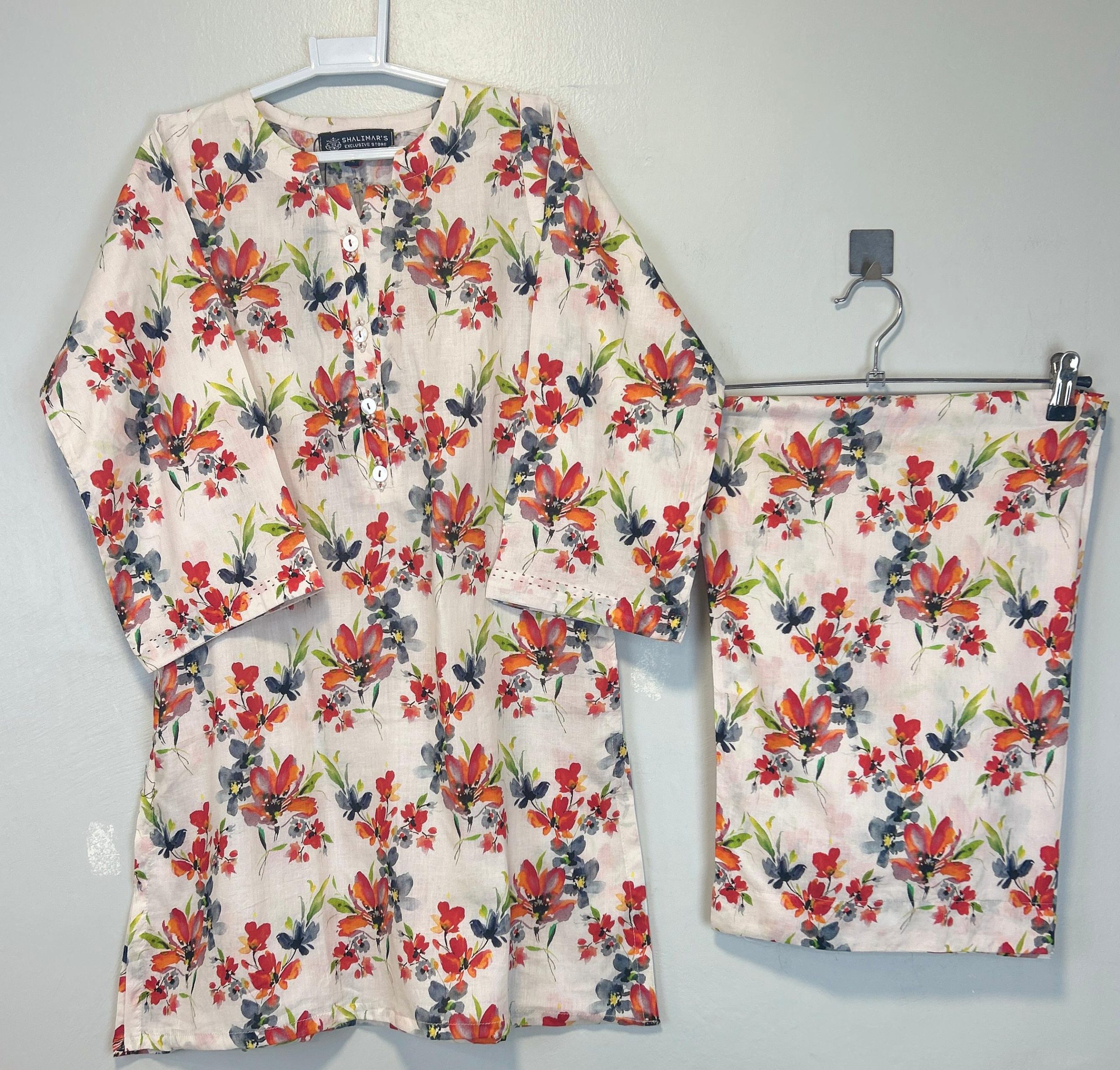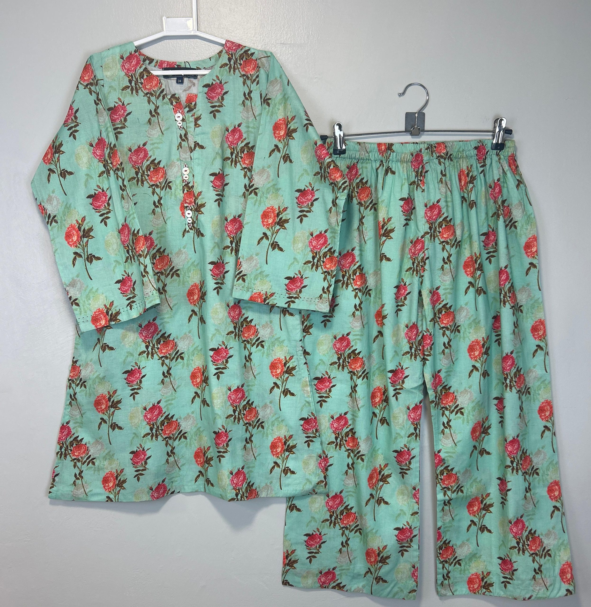 Digital Printed Cotton Shirt, same fabric digital trouser, Stitched with embellishments