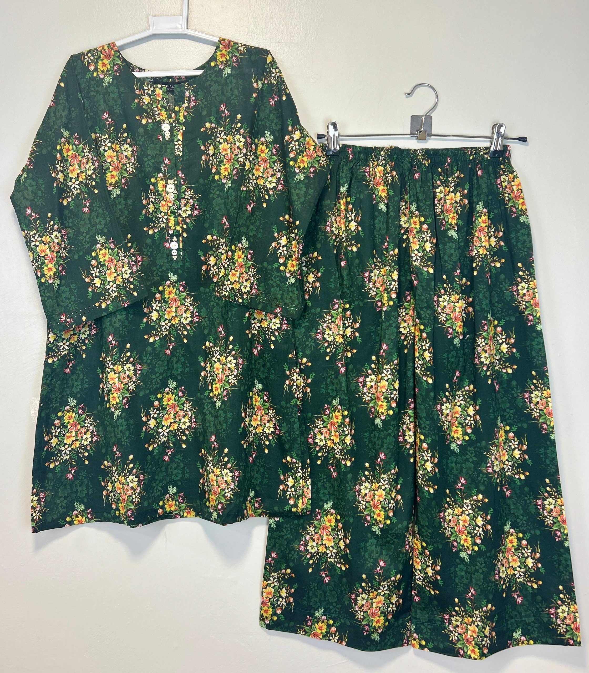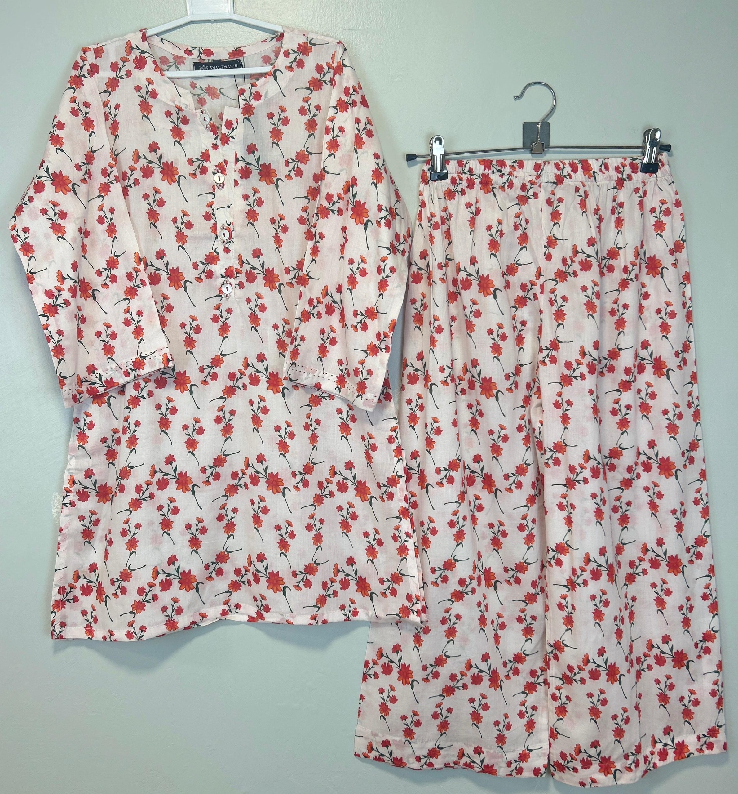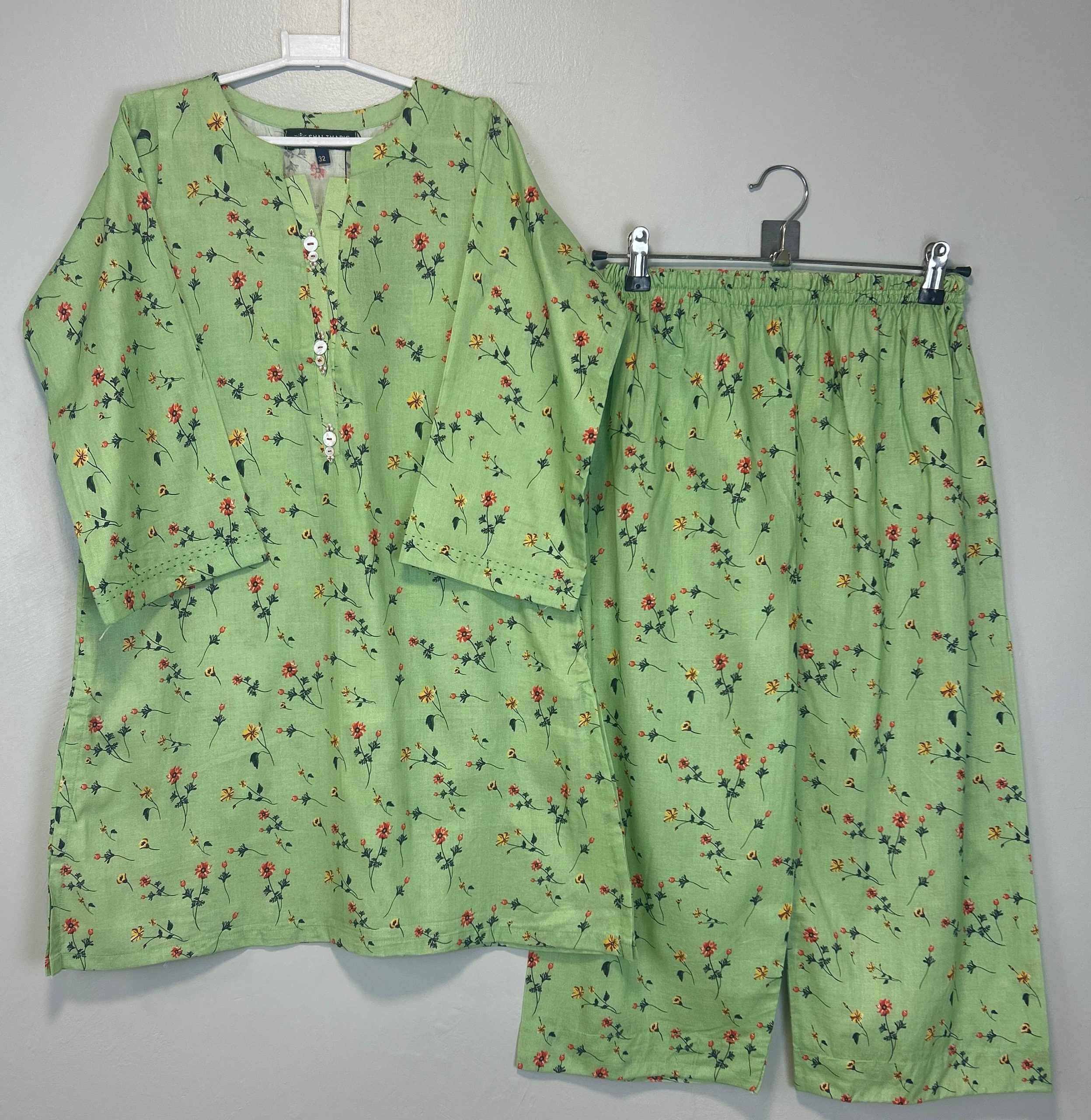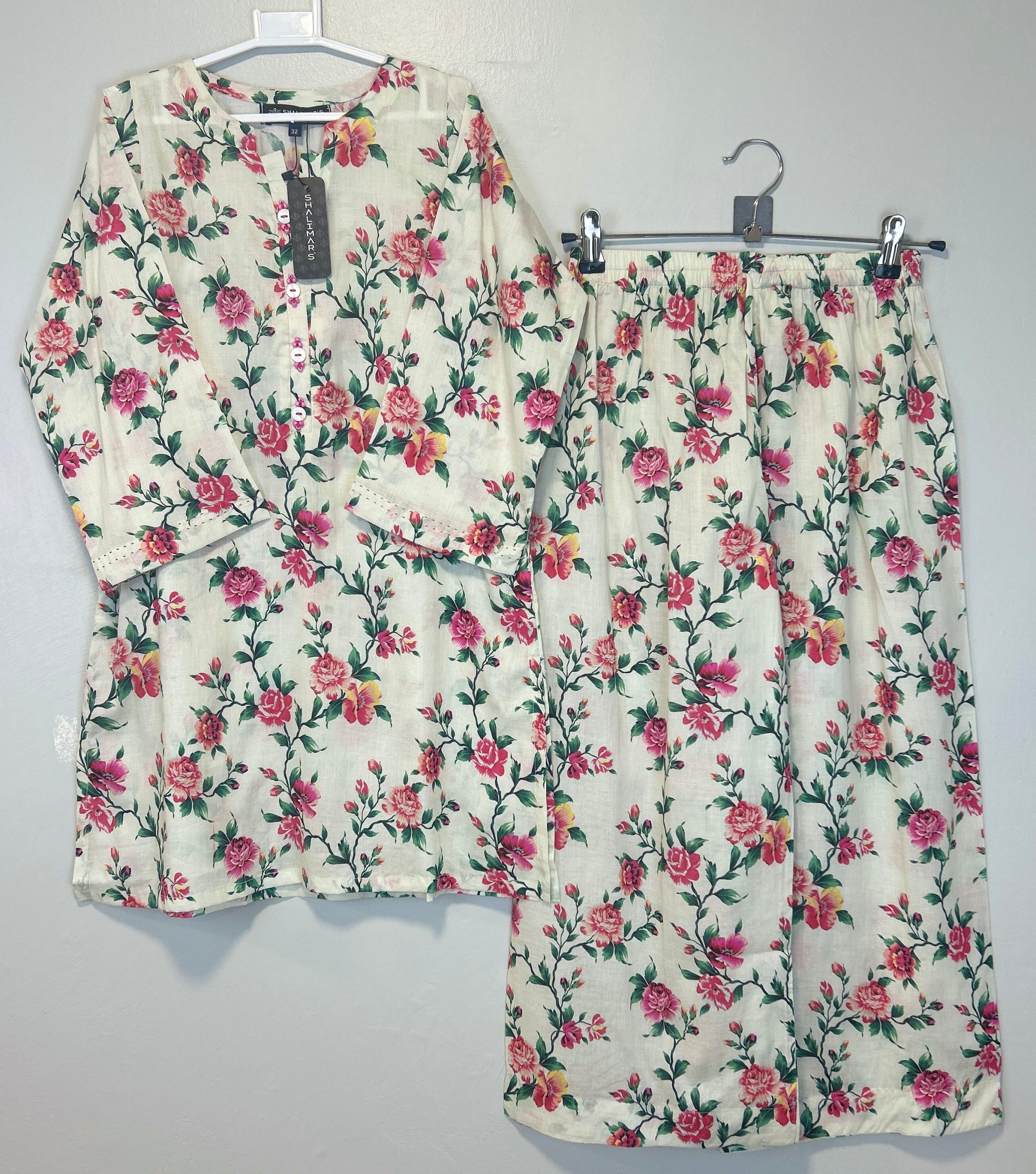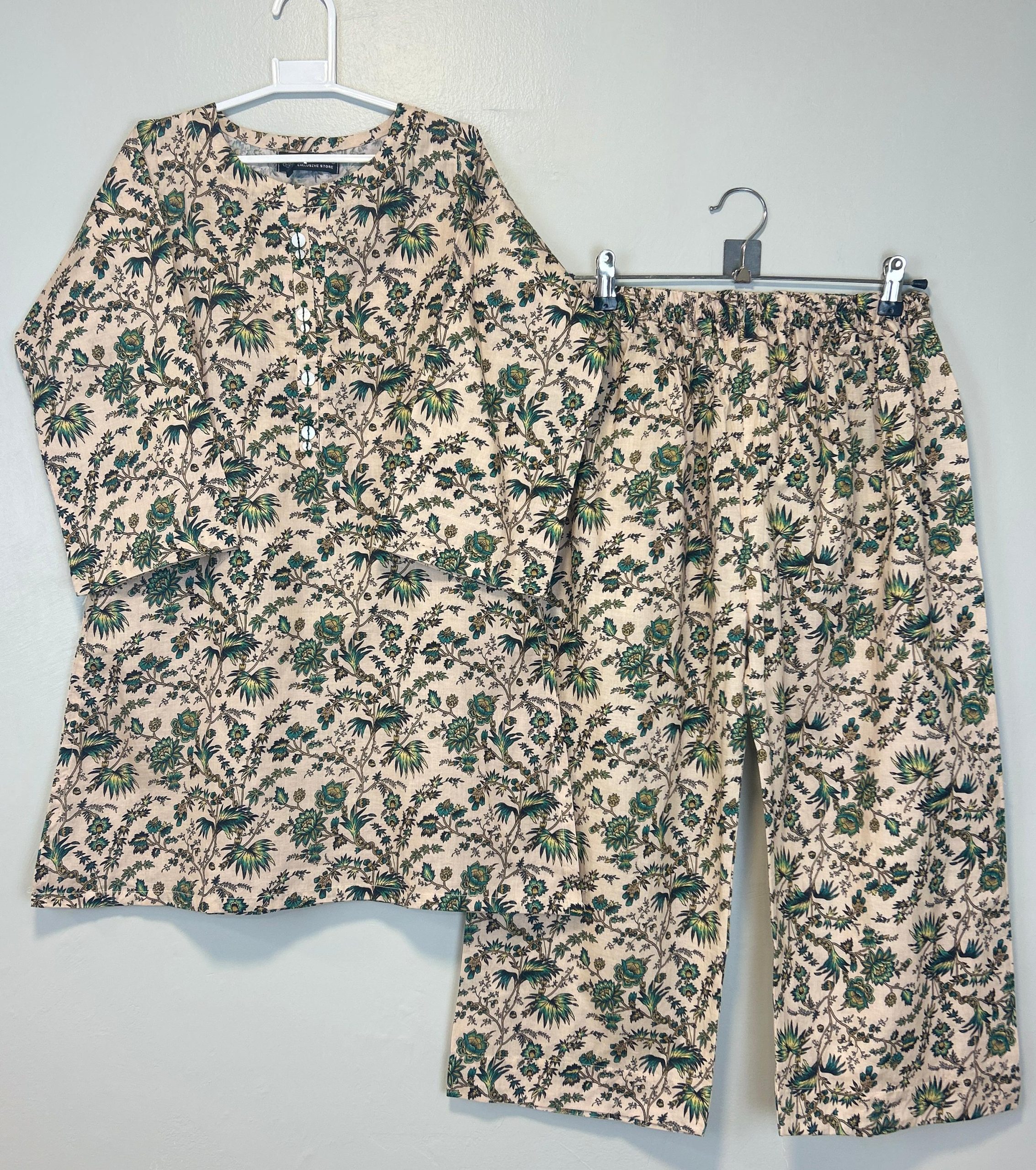 Digital Printed Cotton Shirt, same fabric digital trouser, Stitched with embellishments