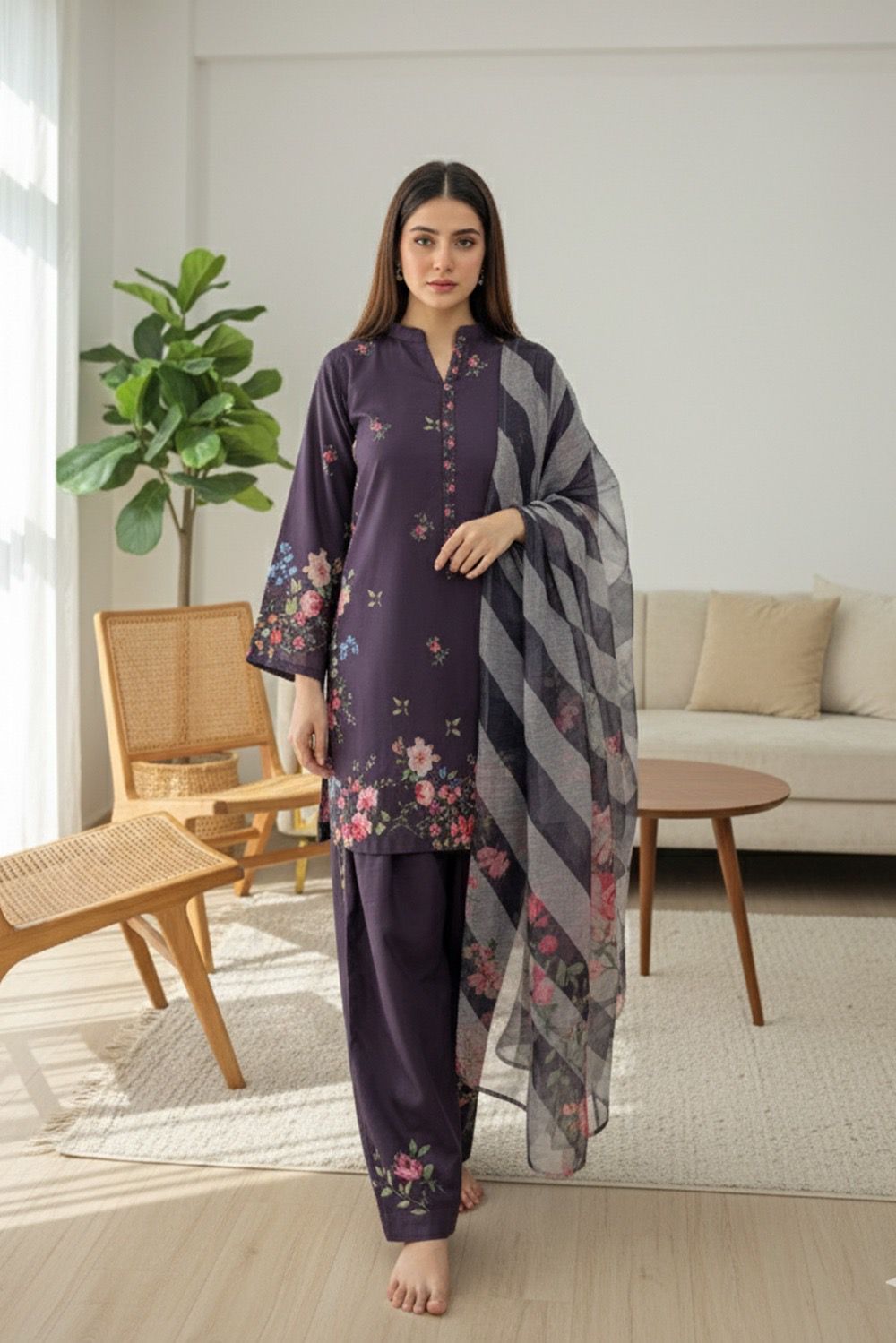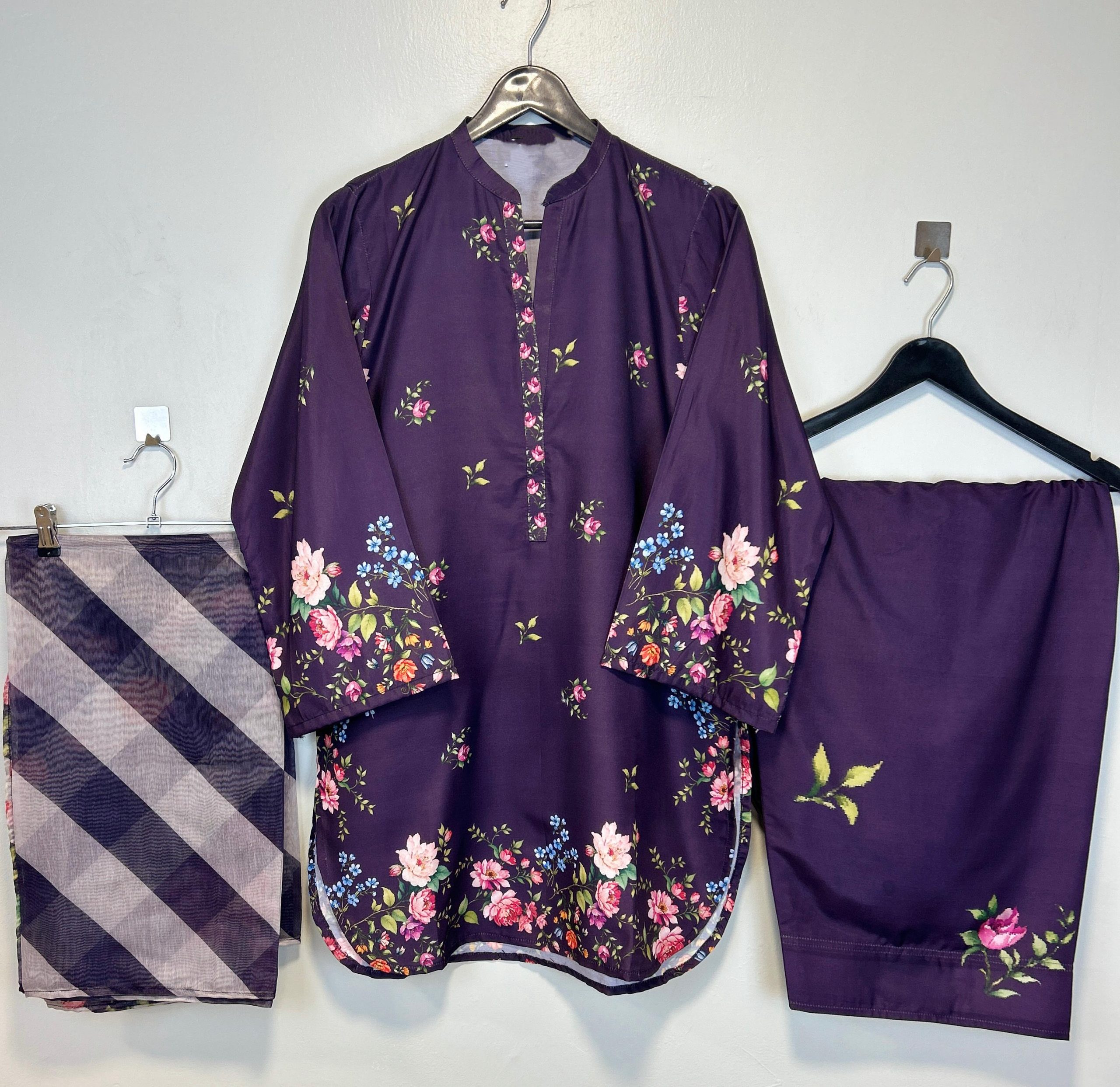Digital Printed Silk Shirt, same fabric digital trouser, Monar Digital Dupatta, Stitched with embellishments