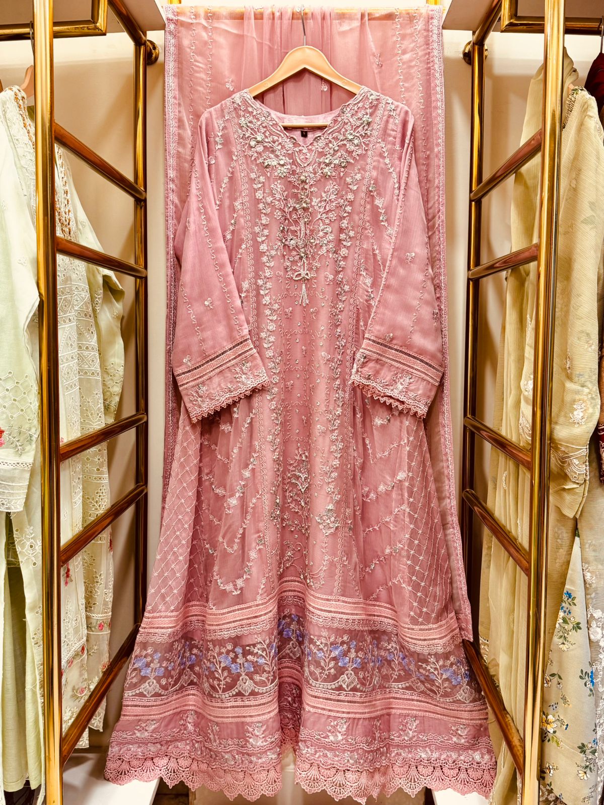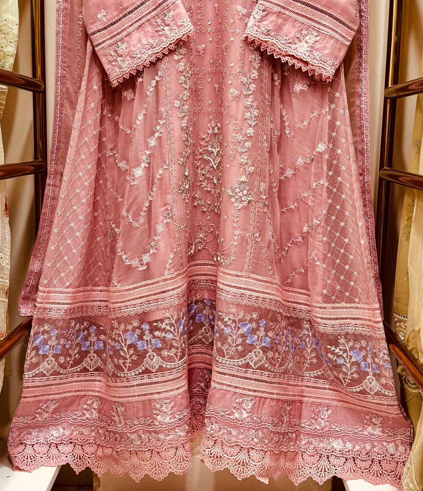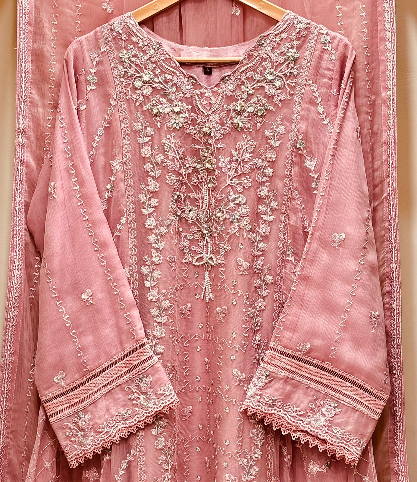 Shirt Chiffon Fully Heavy Front Back Embroided Long Length Gown With Heavy Kora Dapka Handwork And Cotton Silk Inner