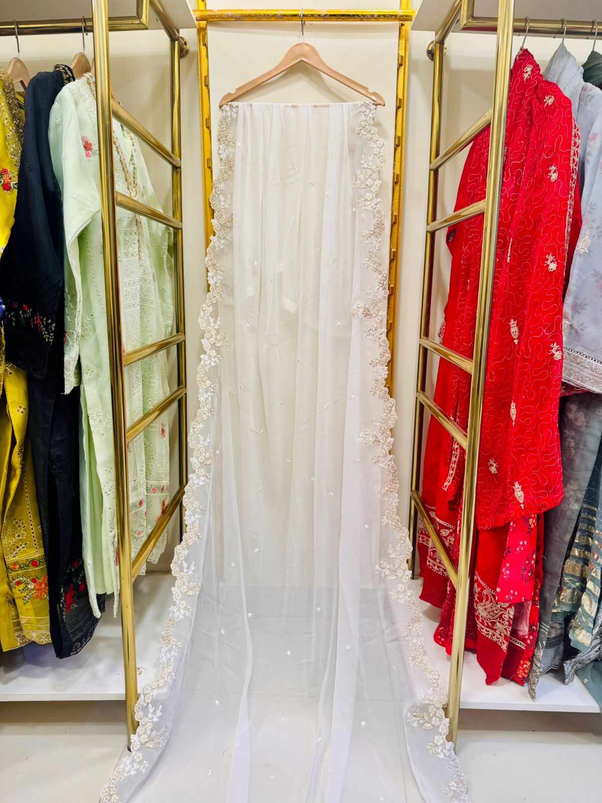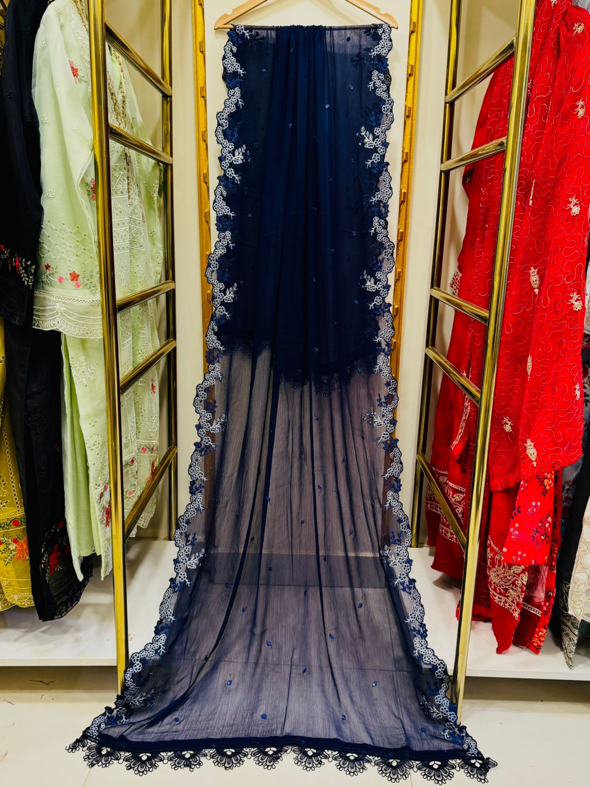 Chiffon Heavy Cutwork Embroided Dupatta With Pallu Lace