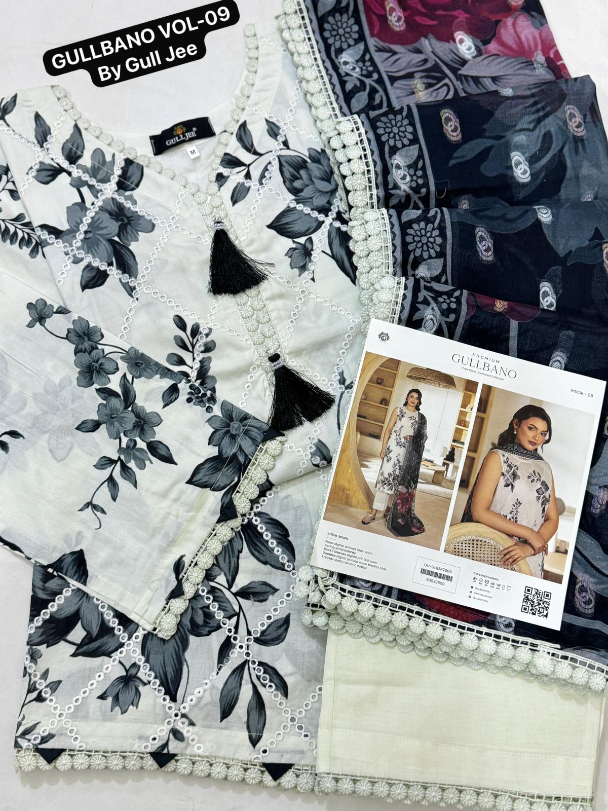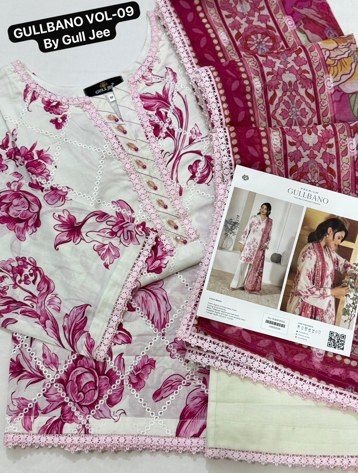 Description: Premium Digital Printed & Boring embroidery Lawn shirt Along Laces ( Inner Attached