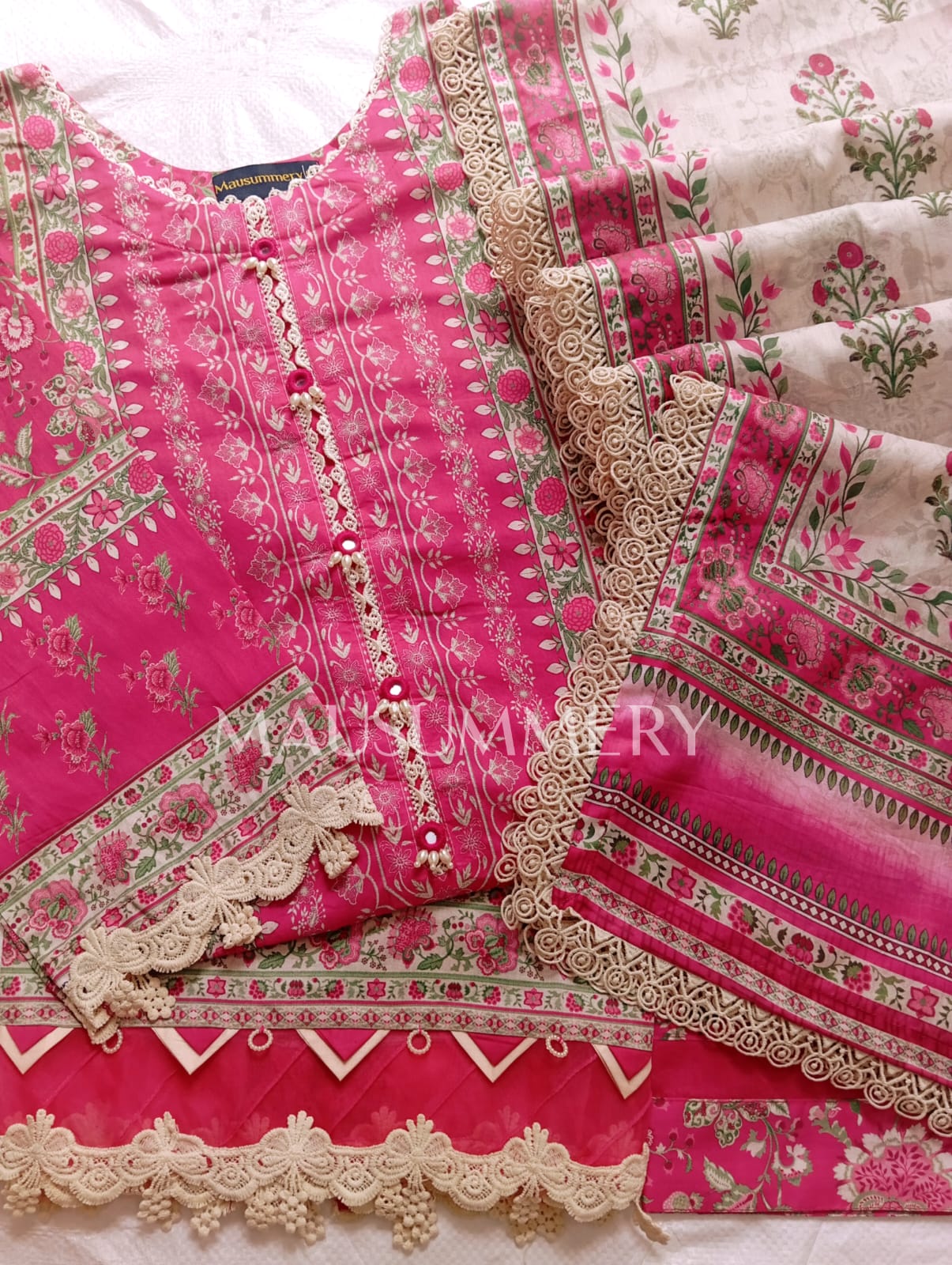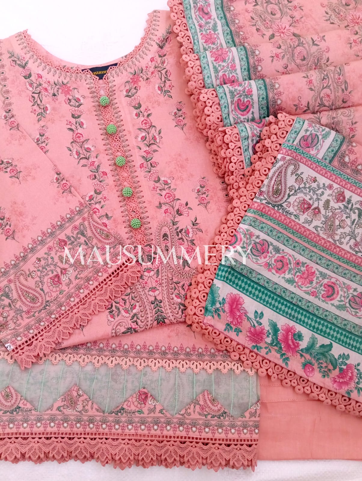 Digital Printed Lawn Shirt Digital Printed Lawn Dupatta With Four Side lacing &